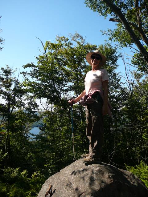 Throughout our road trip we'd been singing along to a song called "Cranberry Lake" on our satellite radio. Suddenly we found out exactly where Cranberry Lake was located, right there in the Adirondacks. It turned out to be another gorgeous spot, this time an enormous lake with a campsite right on its shore, so we decided to stop and check it out. After setting up camp in our desirable new waterfront home, we set off up a rather muddy trail to the summit of Bear Mountain, where we hoped to get a good view of the lake. Our long uphill squelch through the woods was rewarded with an excellent vista, giving us a true idea of the extent of the lake. Of course we couldn't live right on the lake without inflating our canoe and heading out on a fish-hunting expedition. |
