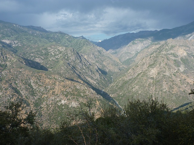 Our faith was restored a little and poor Harvey was subjected to yet another trial on our subsequent visit to Kings Canyon. Sequoia and Kings Canyon were both part of the same park, however the minuscule percentage of the visitors who made the left turn to visit Kings Canyon, meant it was still a peaceful haven. To reach the base of the canyon involved a 30 mile steep and winding drive down through gorgeous wilderness scenery. Not having realised that the drive was 30 miles one way, just to add to the stress of the drive, we weren't entirely convinced that we had enough fuel to make it back up but having, in our stupidity, reached the point of no return we were just left to wonder for the duration of our stay in the canyon. There was a gas station part way up, which may possibly be open on our return trip and which boasted ownership of the country's oldest gravity fed gas pumps, which didn't really reassure us much. This also seemed to be the only spot in the USA where petrol was sold in litres, presumably to keep the customers confused about the price! In any case Harvey did us proud and steamed boldly back up the hill without needing to be gravity fed. |