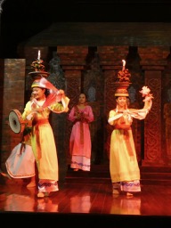 After an afternoon exploring the town, the evening found us taking a class in traditional Vietnamese cookery. Our skills may have been better if the beer drinking hadn't started way before the cookery, but apart from Christine's singed spring rolls, our offerings turned out to plan and delicious. An early start the next day brought us to the nearby Cham ruins at My Son, where Binh's planning allowed us to enjoy the evocative location, surrounded by rainforest, by ourselves for a while. The visit was rounded off with a display of traditional Cham music and dancing. |