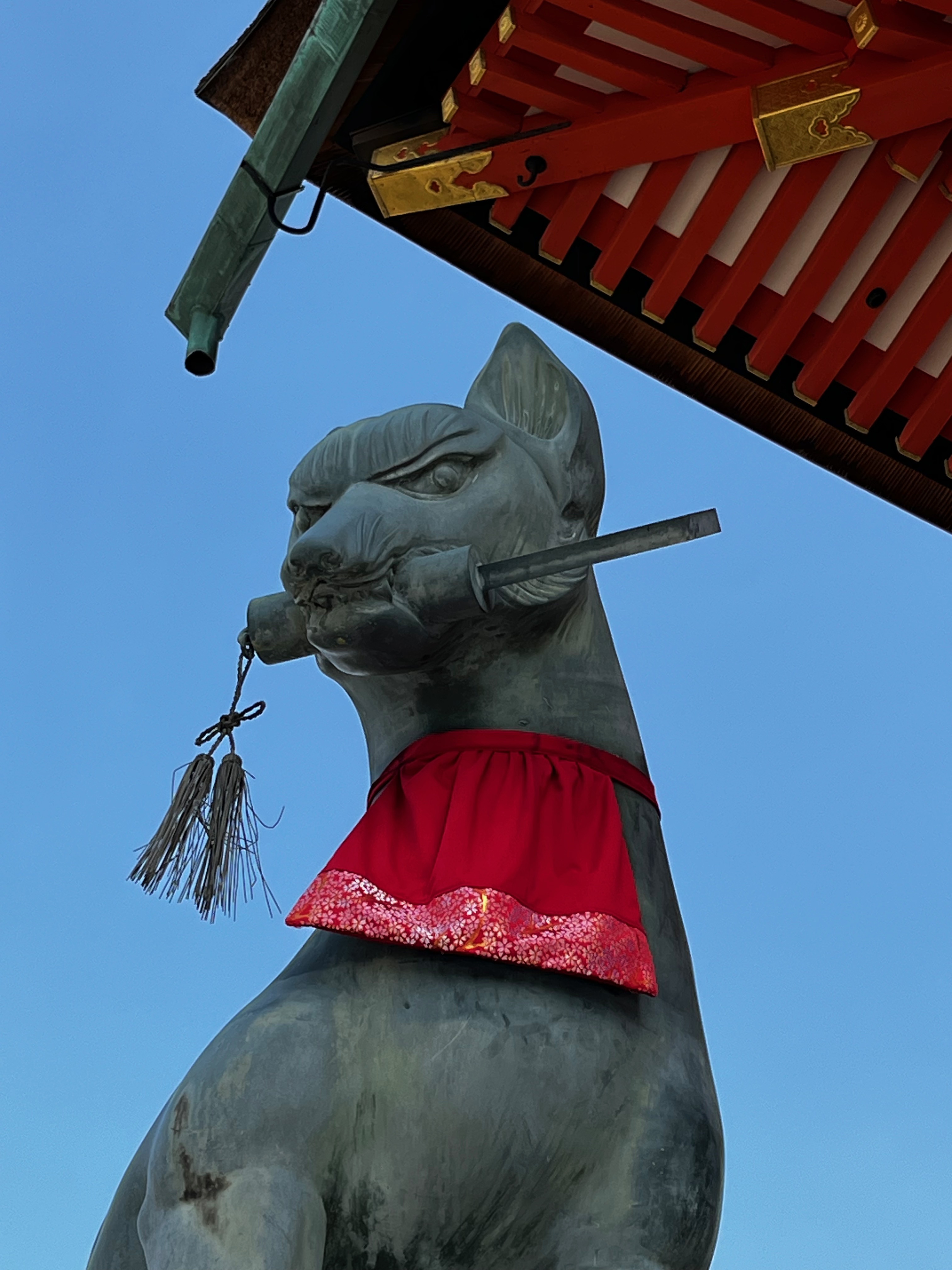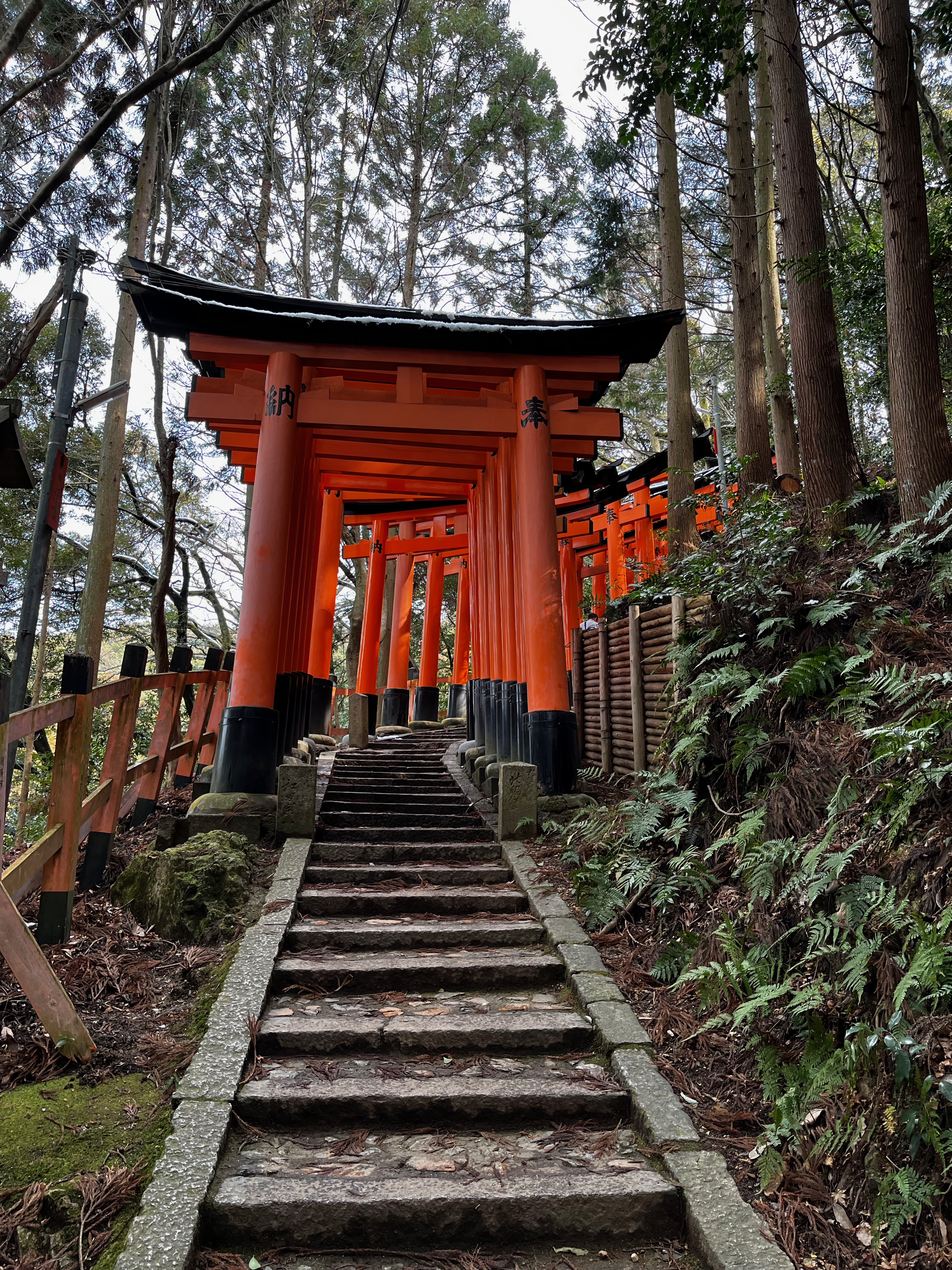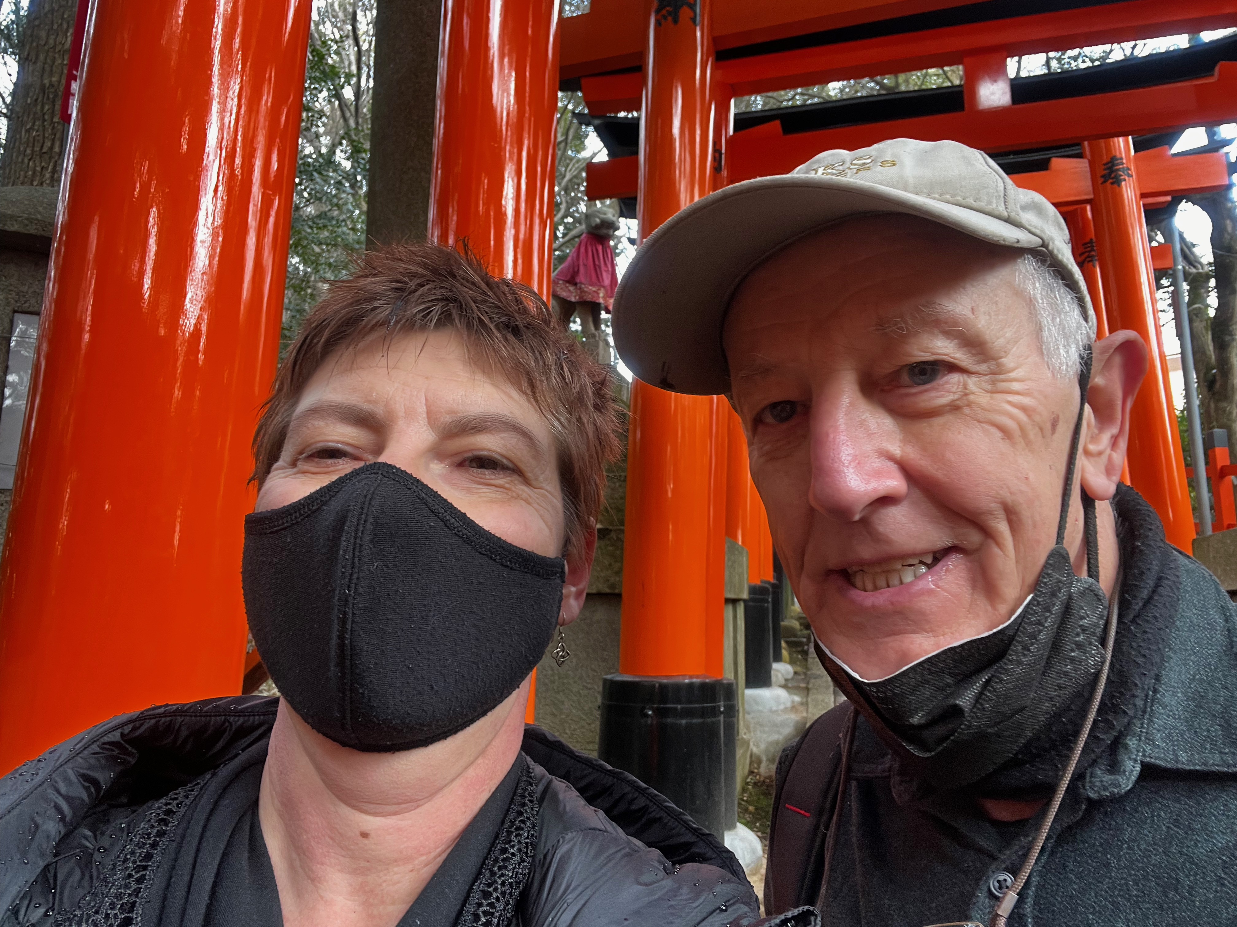 The day began with us taking the Keihan Line train south to visit Fushimi Inari-Taisha shrine. A stunning place with torii or shrine gates creating surreal pathways up a wooded mountain side. The entire route covers about 4 kilometres and walkers pass many religious icons, in particular foxes, along the way. The fox was a messenger of Inari, god of cereals, and are also just referred to as Inari. They often carry the key for the rice granary in their mouths. The walk to the summit and back was a beautiful if tiring experience.