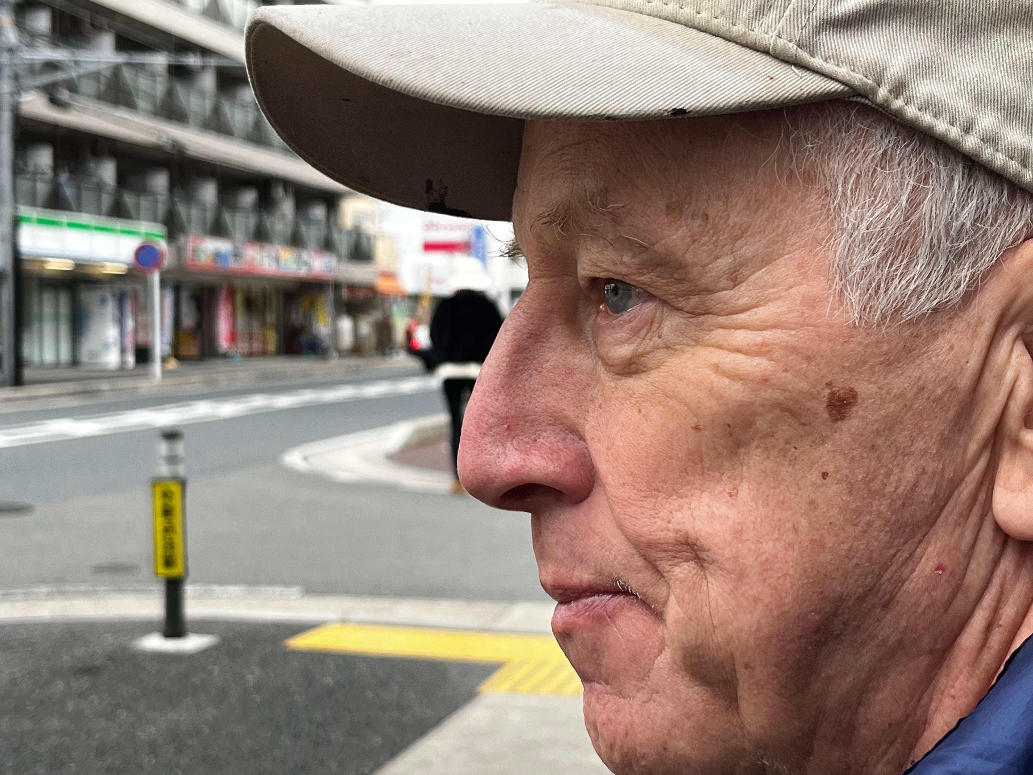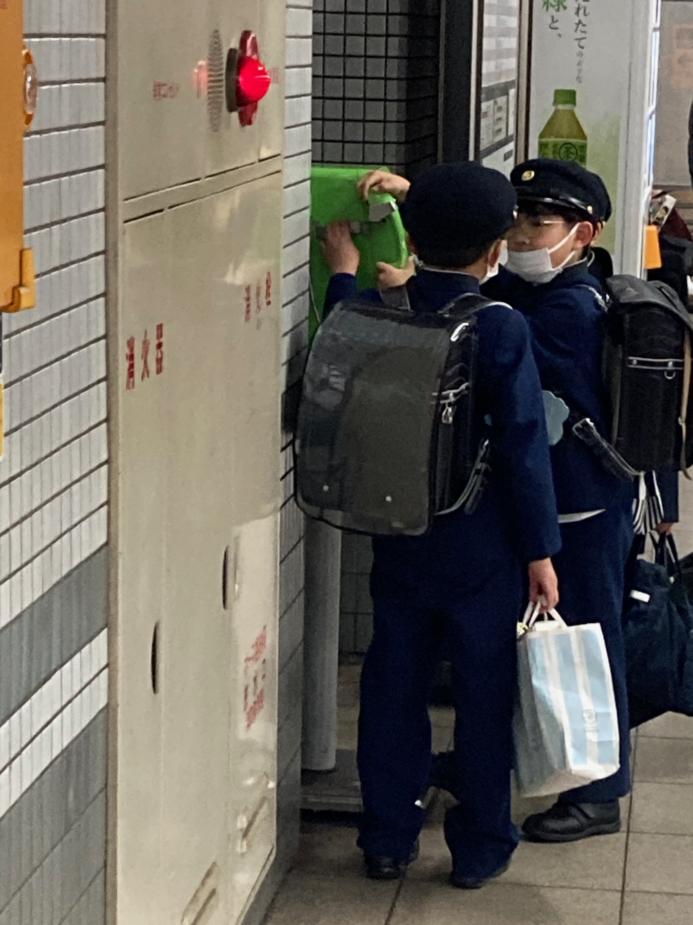 Working out where we could take a bus to bring us to the underground train, we stopped at the convenience store for our now customary lunch of onigiri, a triangle of rice with a protein filling, wrapped in a sheet of seaweed and hot tea in a bottle. Eating lunch passed the time while waiting over an hour for the bus and chatting with friendly passers-by. |