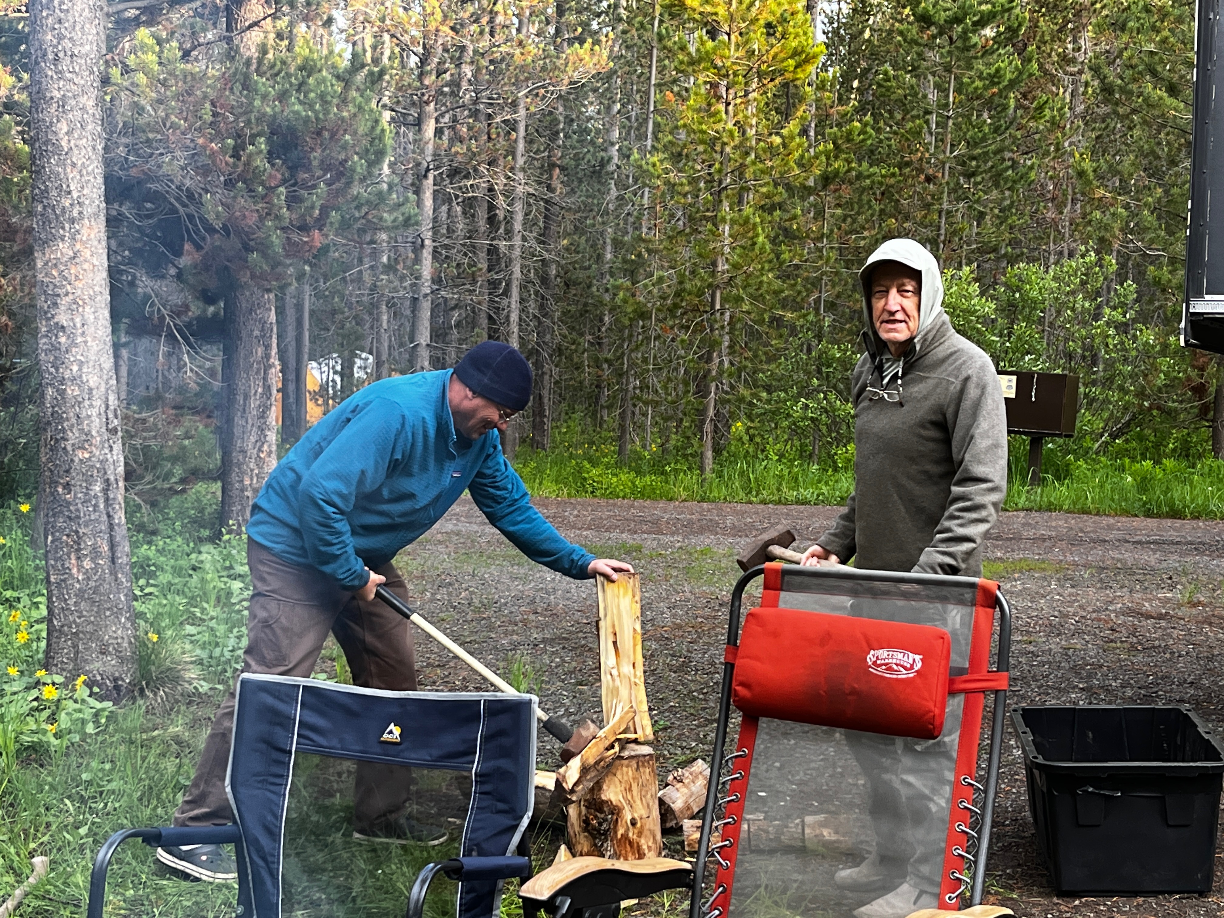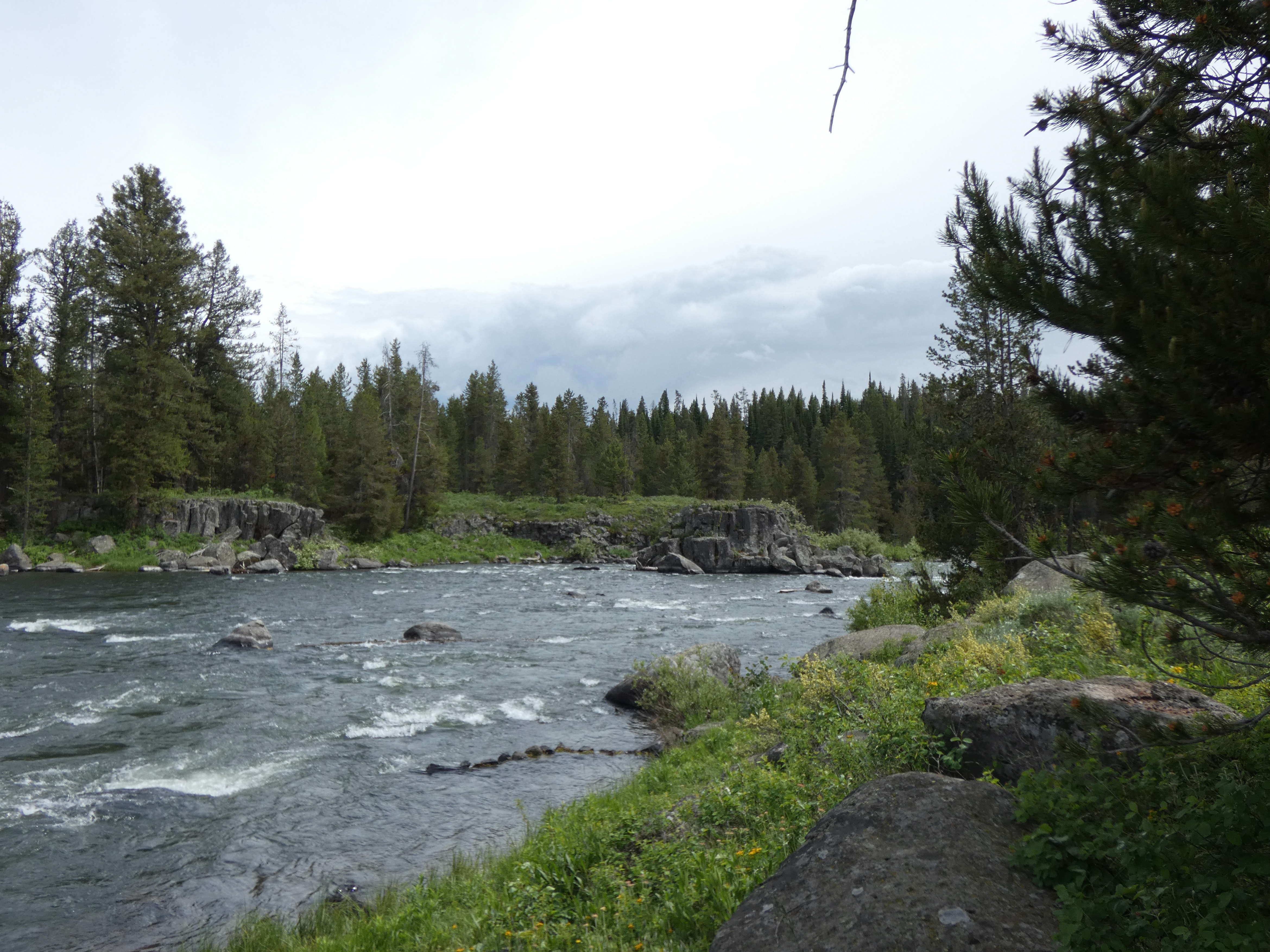 We met up with Charlie and Heidi for another camping adventure, this time in Northern Idaho . We'd been to the area before and had hoped to try a different camping spot in the large recreation area on the Warm River but found all the spots were already reserved. After a very scenic drive around to the town of Ashton, we headed northwards again and grabbed sites at Riverside Campground on the Henry's Fork River to await our friends' arrival. |