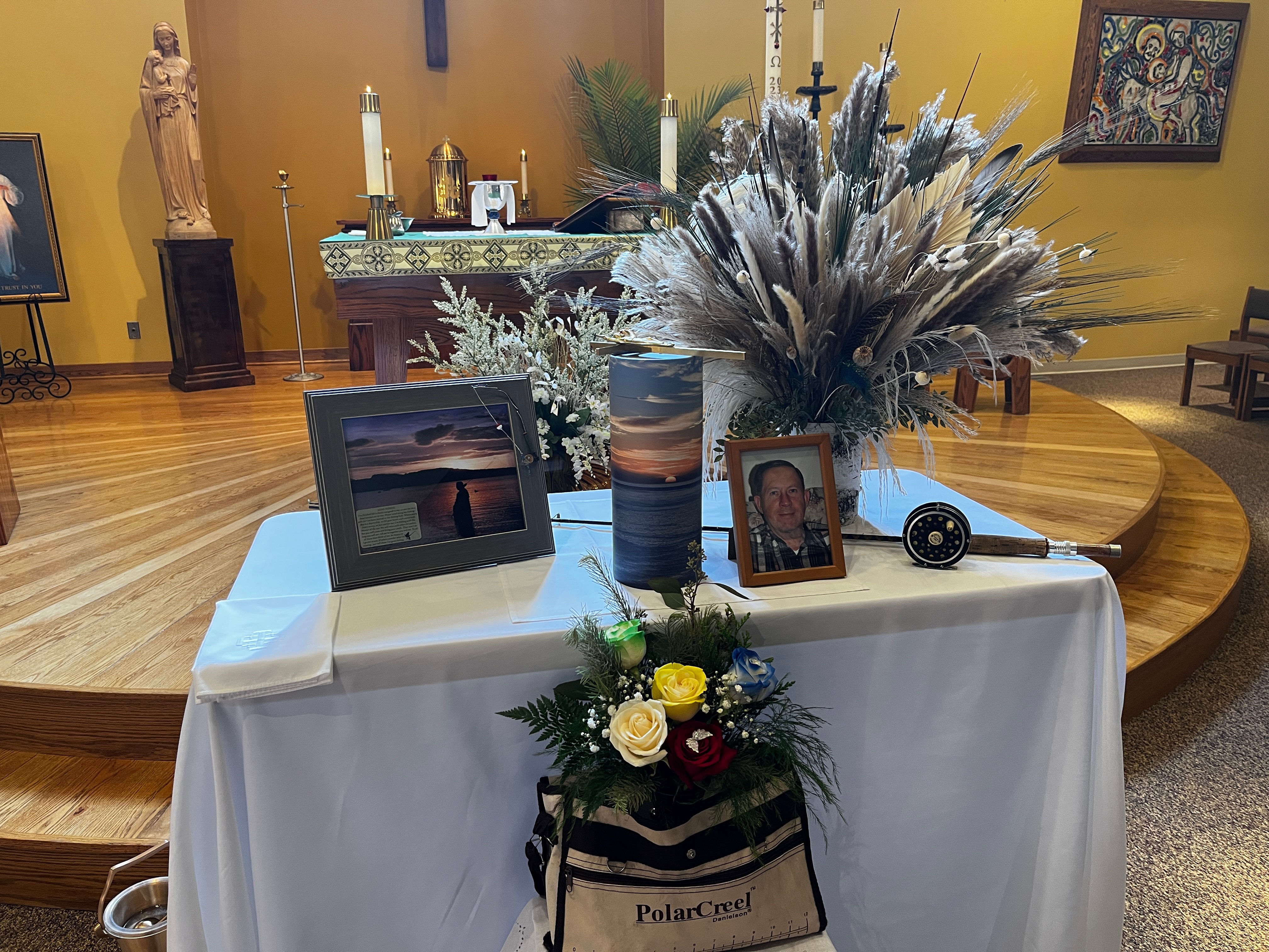 The service was in the Catholic Church in Anaconda and included military honours in recognition of Gary's service for his country. Unfortunately, during the service, we managed to contract Covid. Phil tested positive first but the chances of Christine escaping the virus when living in a 22 foot camper together were slight. The last two weeks of our Montana trip were spent resting and recovering at Georgetown Lake. At first, even walking to the outhouse was a challenge, but as the days went by we slowly began to recover, finally testing negative shortly before our flight home, meaning we could at least enjoy dinner with Charlie and Heidi before we left. |