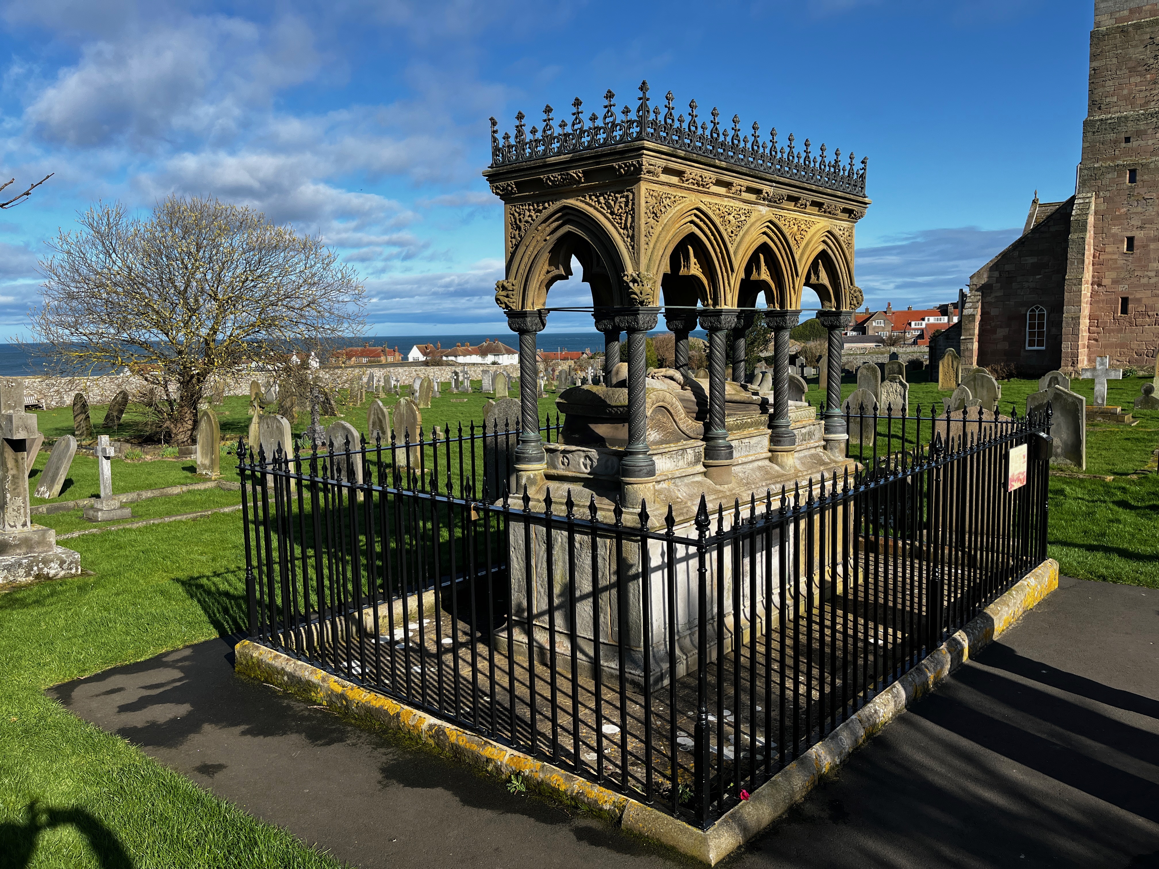 The town of Bamburgh lies very close to the offshore Farne Islands. We were too early in the season to be able to visit and enjoy the island's nature but we learned about their most famous resident, Grace Darling. The town's museum told the story of how Grace, who lived on the islands with her father, who was the lighthouse keeper, assisted him rescue sailors shipwrecked in a storm by rowing their heavy rowing boat directly into the storm. The museum and memorial at the church were a fitting tribute to the heroine. |