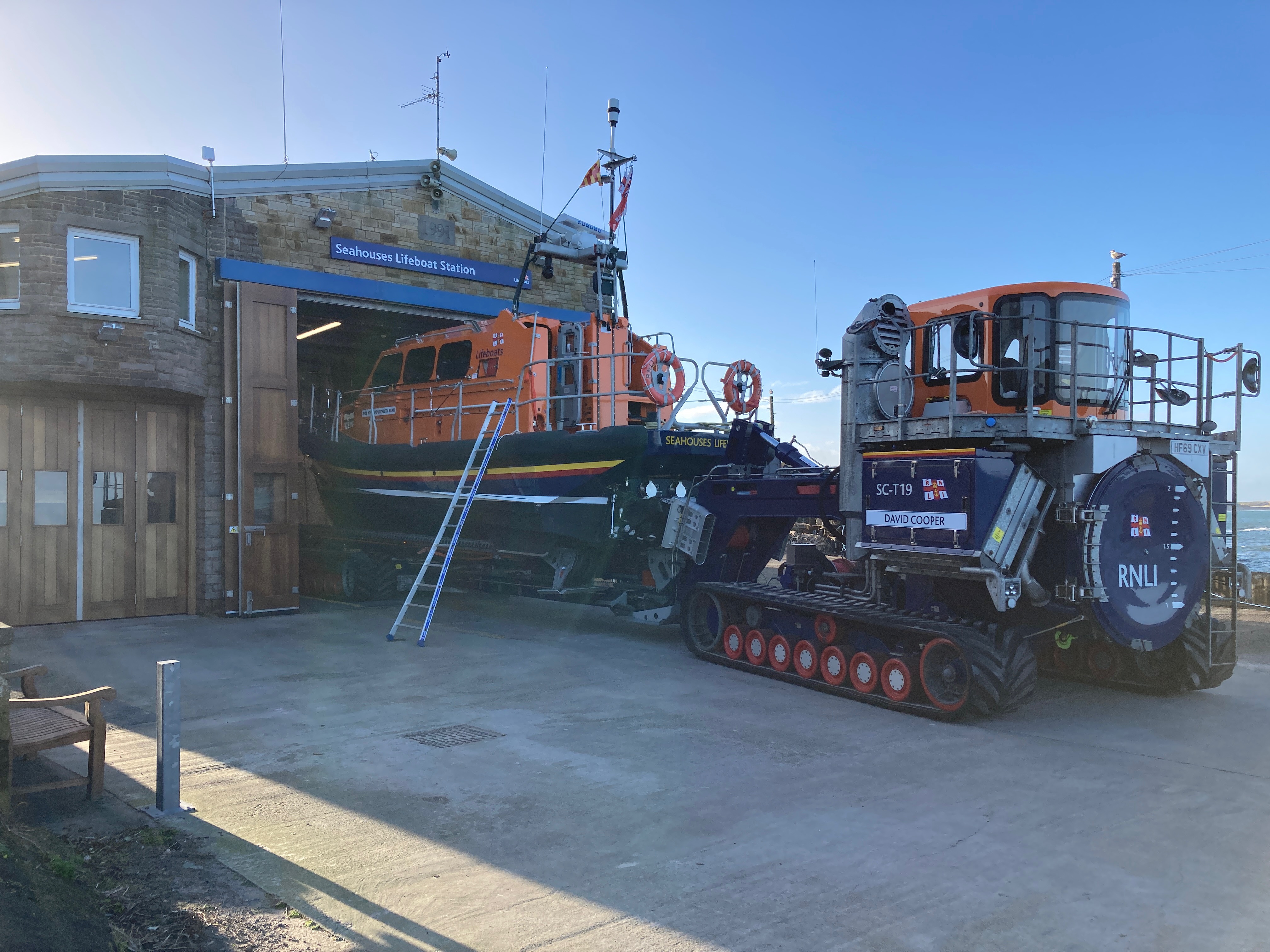 Back in Seahouses, we were lucky to see the local lifeboat and its launching tractor.
