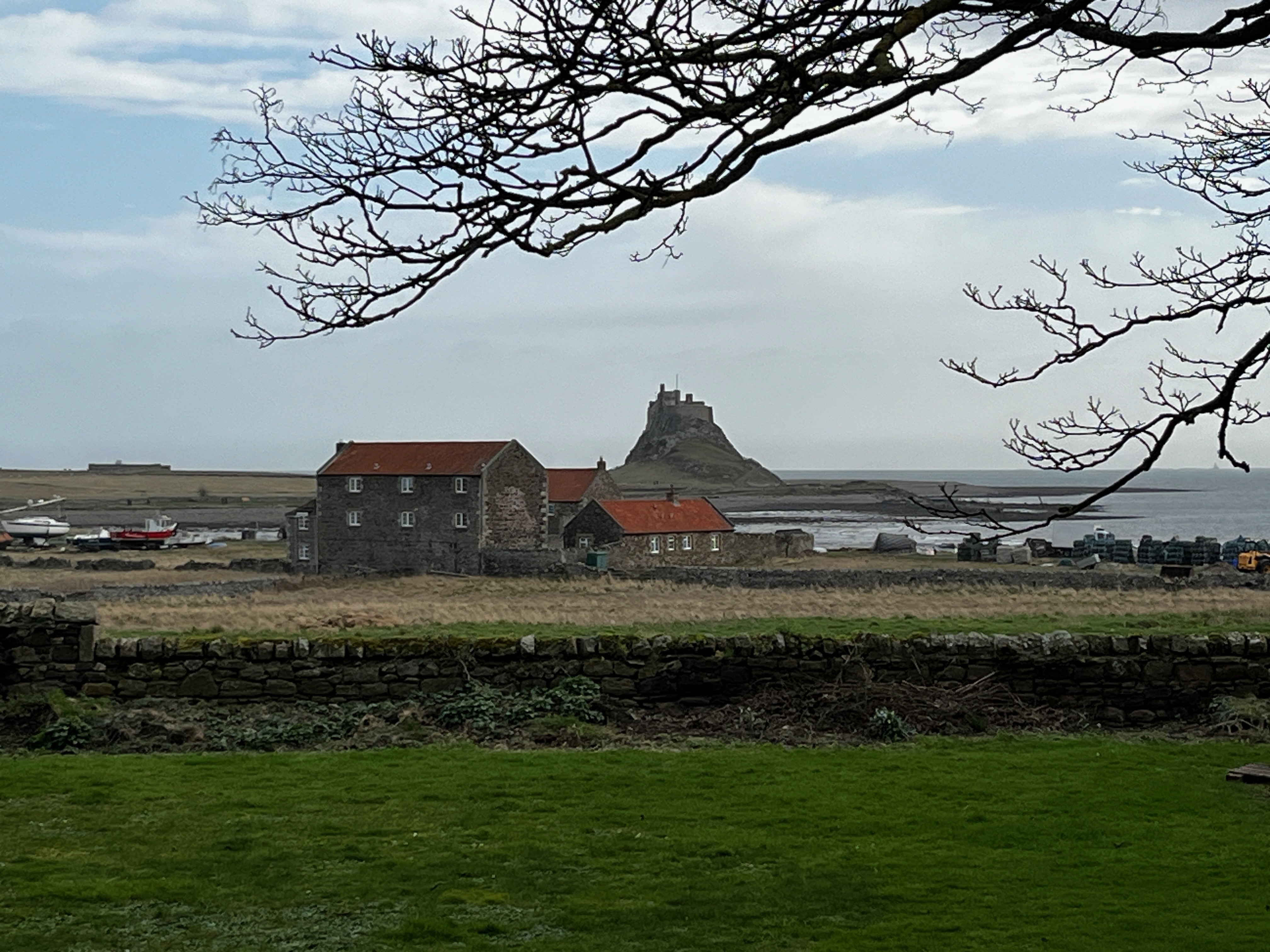 Our visit the next day had to be carefully timed. The island of Lindisfarne, or Holy Island, is only accessible via a causeway which becomes submerged at high tide. We enjoyed a hike around the island, seeing the Priory, the Castle and harbour, where old upturned boats were used as storage sheds. Imposing Bamburgh Castle could clearly be seen on its clifftop in the distance. We rounded off our visit by sampling the mead produced on the island. We took a hasty walk on the beach near Seahouses on our way home. |