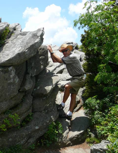 Our third trip took us to Grandfather Mountain. A spot which, although somewhat theme-parked and expensive, contained an interesting collection of native wildlife, rescued after being shot. The bears were enjoying a nap in the shade and didn't look too menacing but the cougar was wide awake and alert. We hoped we wouldn't meet either in the wild on our travels. On our ascent, we did encounter a real live grandfather or two though! |